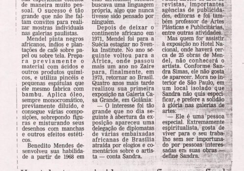 O Globo, março de 1990, reportagem “Mendel: técnicas aprendidas com africanos”.