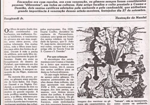 D.O. Leitura, agosto de 1986, “Cosme e Damião”, ilustração Mendel. Publicação cultural da imprensa Oficial do Estado.
