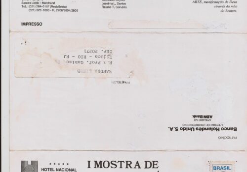 Convite a Mendel para a I Mostra de Artes Plásticas “Sem Fronteiras”, 1990, Hotel Nacional, Rio de Janeiro.