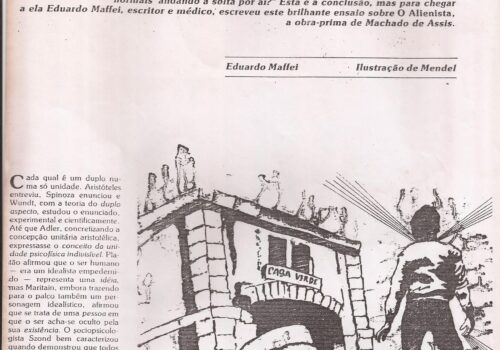 D. O. Leitura, novembro de 1985, “O Alienista: tese,  antítese e síntese”, ilustração de Mendel. Publicação cultural da imprensa Oficial do Estado.