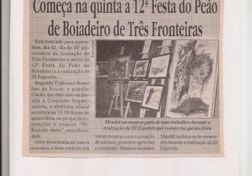 Folha de Santa Fé, outubro de 1995, matéria sobre III Expotrês, exposição de Mendel.