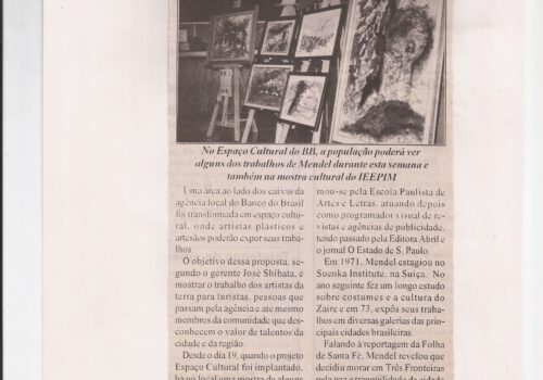 Folha de Santa Fé, setembro de 1995, reportagem sobre abertura do Espaço Cultural Banco do Brasil, exposição de Mendel.