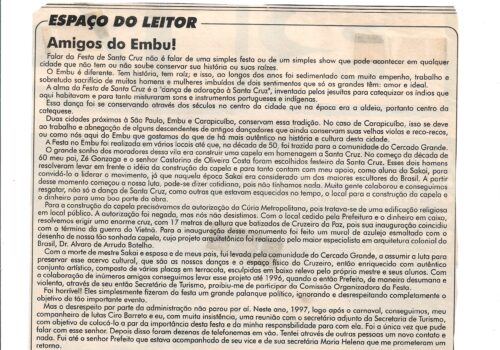 Folha de Embu, julho de 2007, reportagem sobre os 453 anos de Embu: “O Embu de antes”.