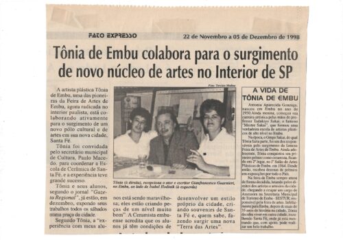 Fato Expresso, novembro a dezembro de 1998, reportagem do Tônia do Embu em colaboração do novo núcleo de artes no interior de São Paulo, em...
