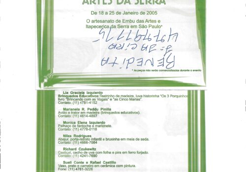 Convite para a Exposição Artes da Serra, artesanato de Embu e Itapecerica em São Paulo – contém lista de artistas e suas obras.