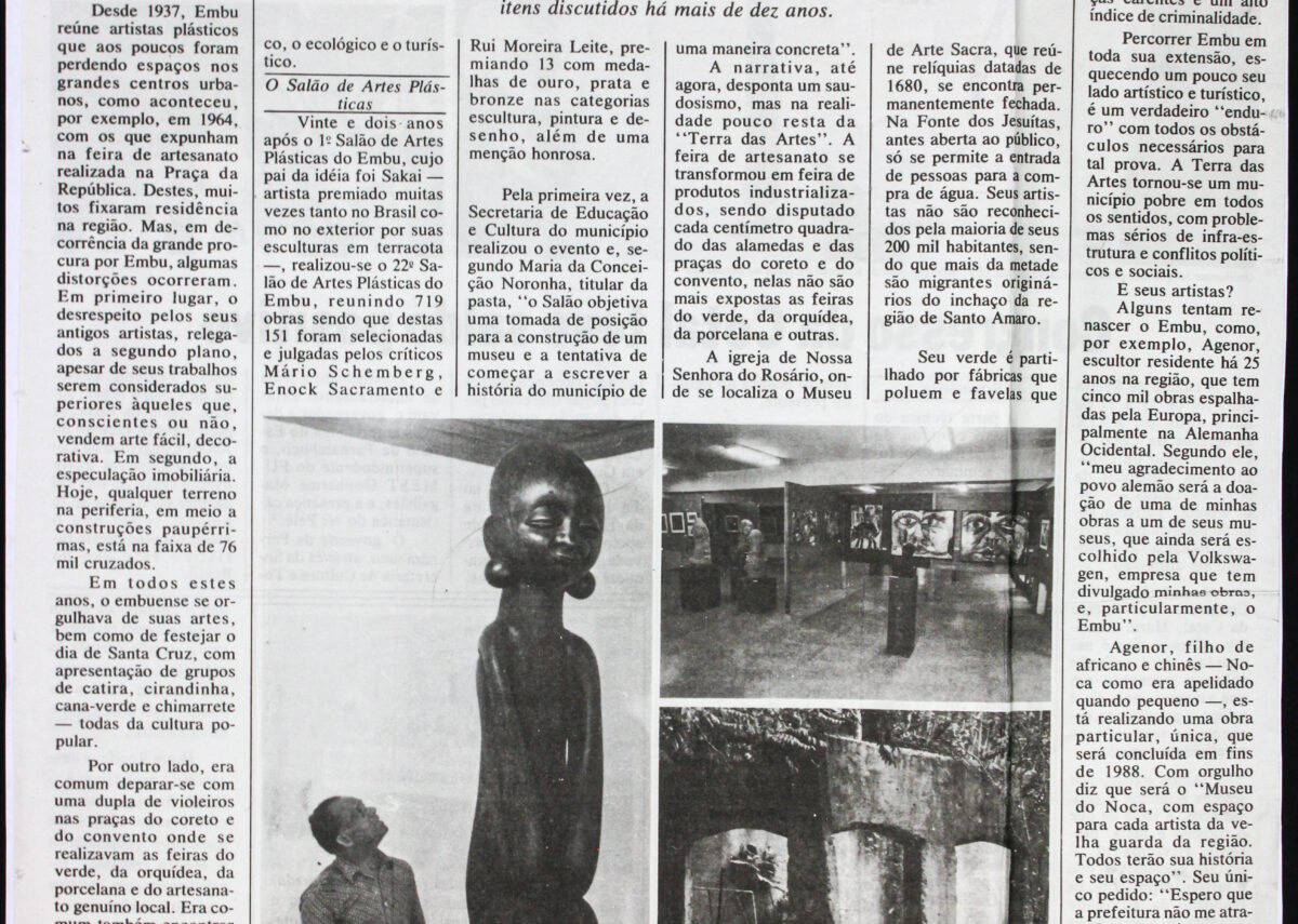 FUMEST, maio não datado, reportagem “Contradições do Embu Terra das Artes”. Sobre a perda da história e Agenor.