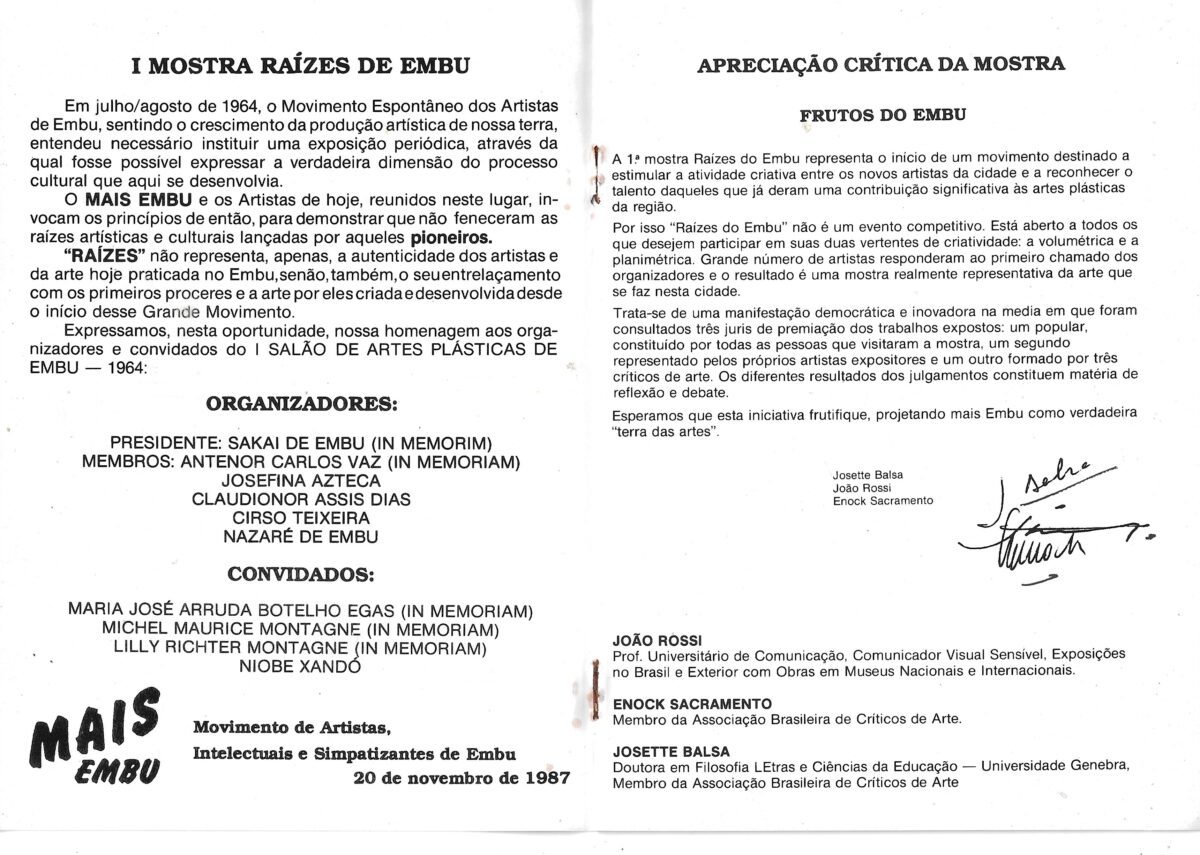 Catálogo da I Mostra Raízes de Embu, novembro de 1987, realização Mais Embu. (03)
