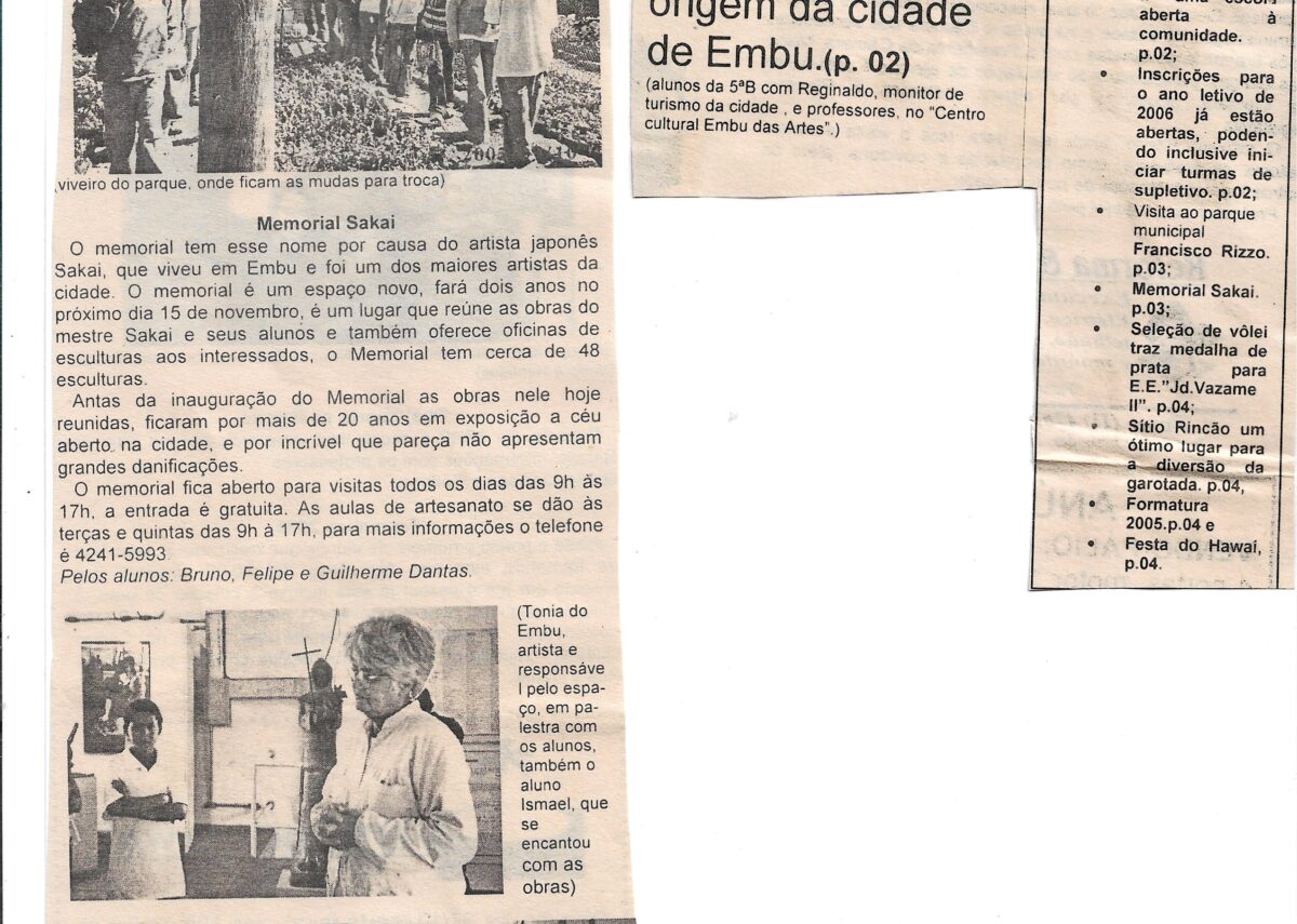 Jornal Vazame II, sem datação, matéria sobre o Memorial Sakai e Projeto Cidadania, crianças conhecendo as origens da cidade.