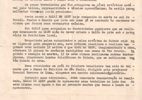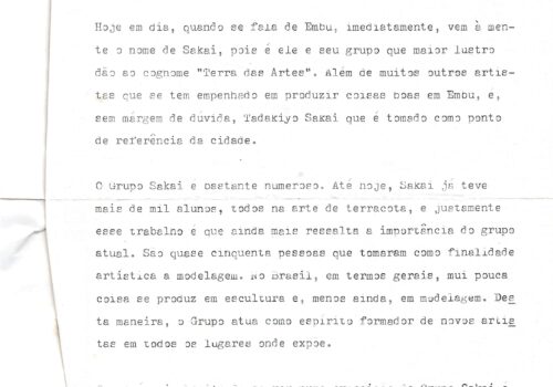 Texto datilografado (02) sobre Sakai do Embu, por Ernestina Karman, julho de 1976. Com anotações.