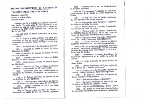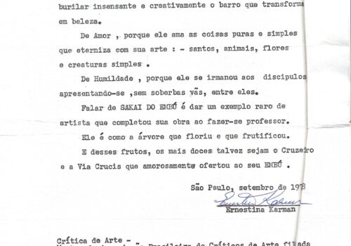 Texto datilografado sobre Sakai do Embu, por Ernestina Karman, setembro de 1978.