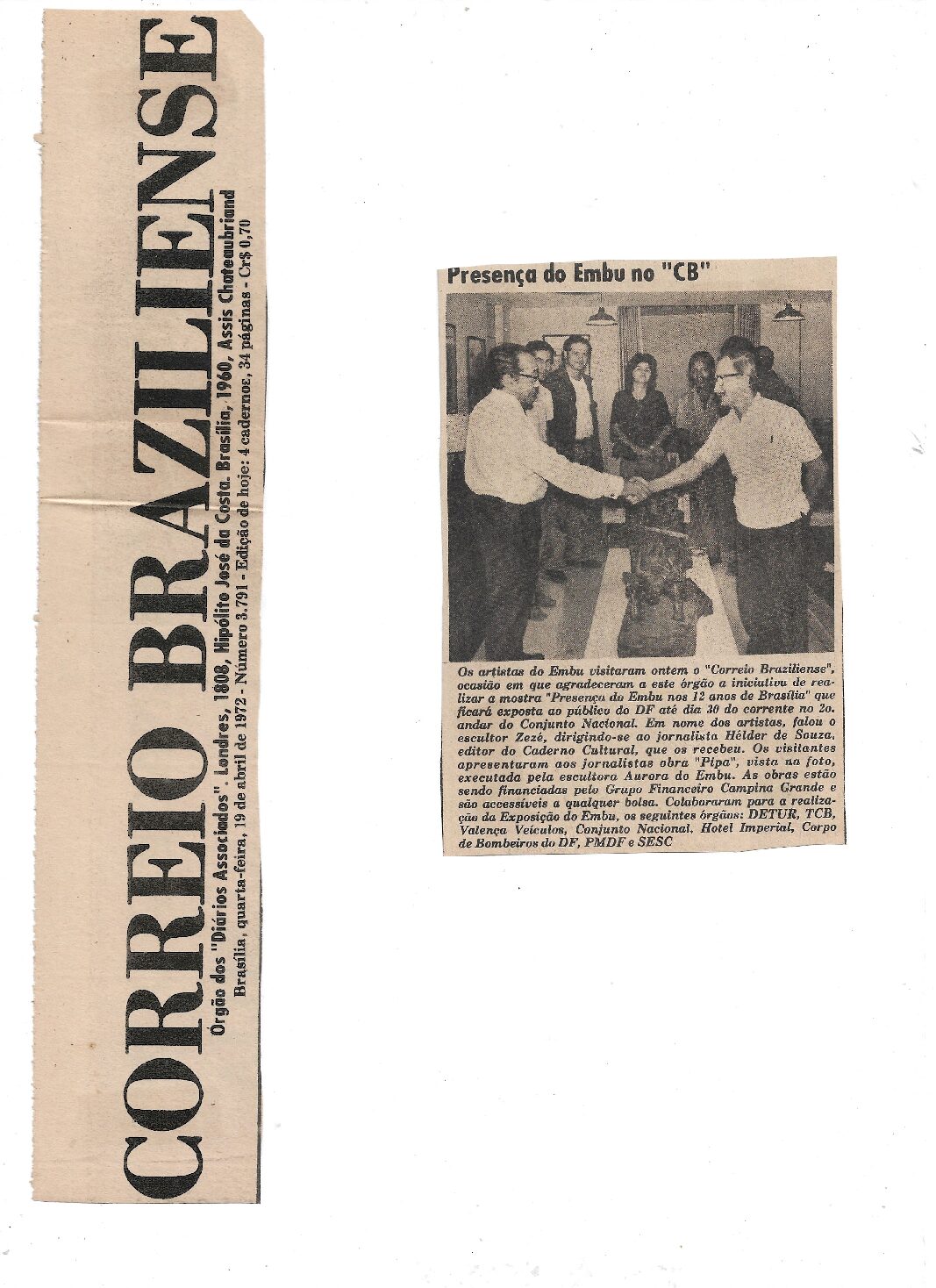Correio Braziliense, 19 de abril de 1972, Presença do Embu no “CB”. Artistas do Embu visitam Correio Braziliense.