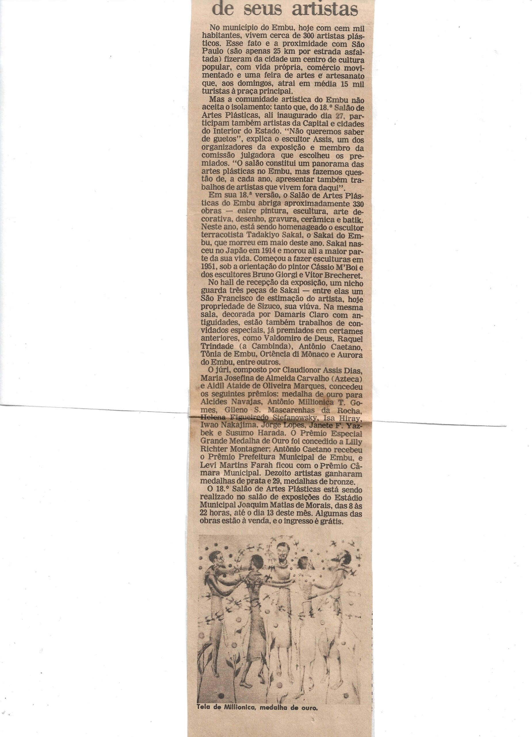 Folha de S. Paulo, 4 de dezembro de 1981, reportagem do 18° Salão de Artes Plásticas com o tema: Embu não quer isolamento de seus...