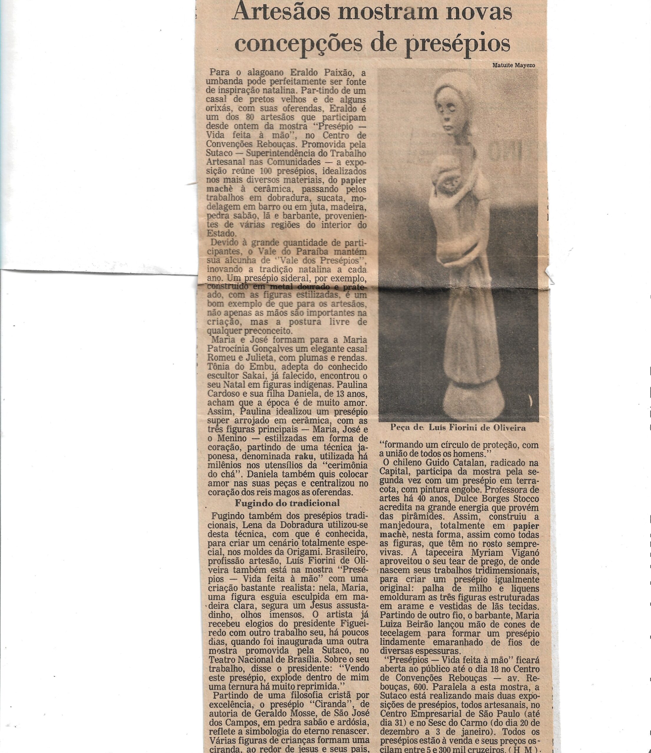 Folha de S. Paulo, 2 de dezembro de 1983, reportagem sobre artesanato e novas concepções de presépio. (02)