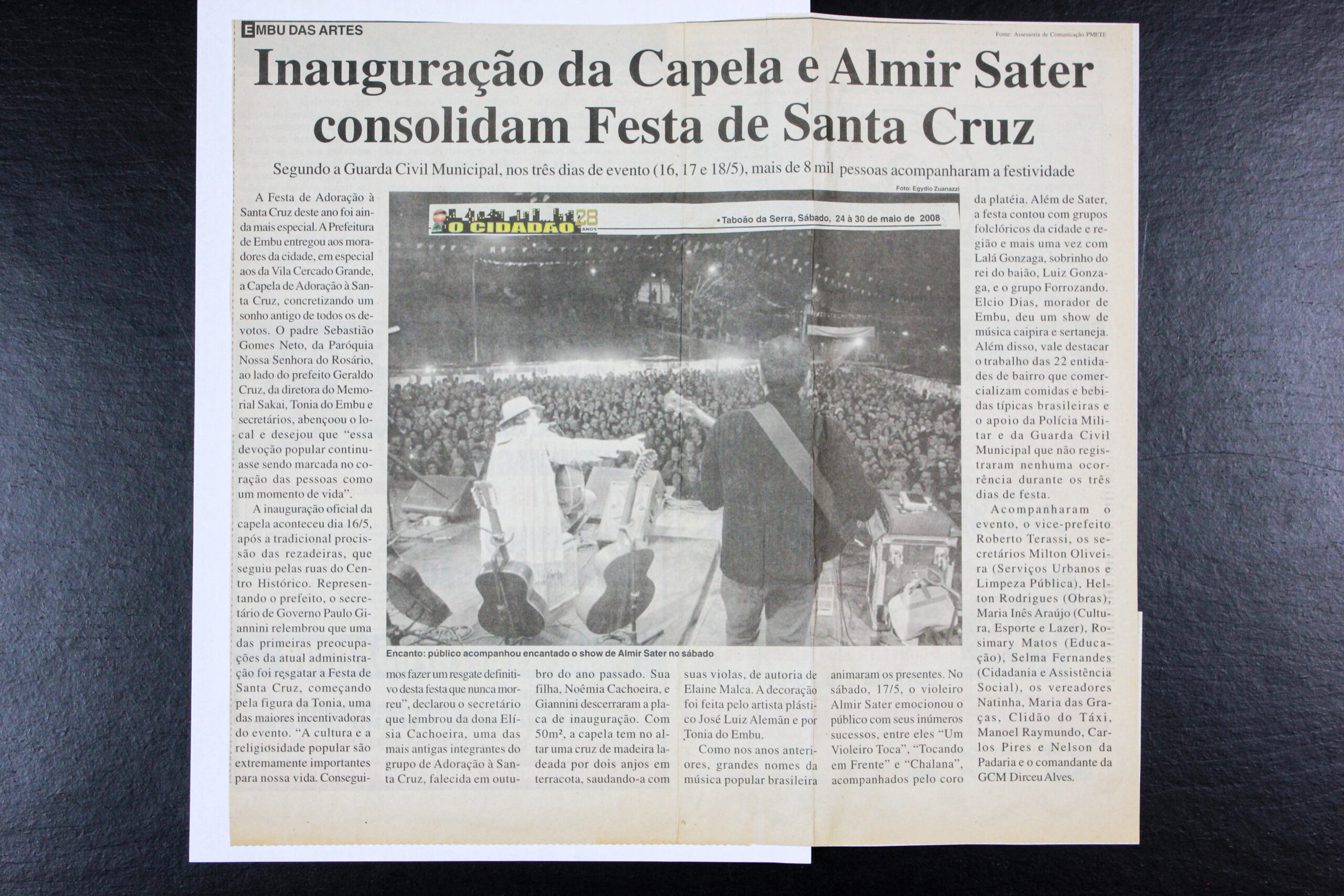O Cidadão, maio de 2008, “Inauguração da Capela e Almir Sater consolidam Festa de Santa Cruz”. Capela de Adoração a Santa Cruz.
