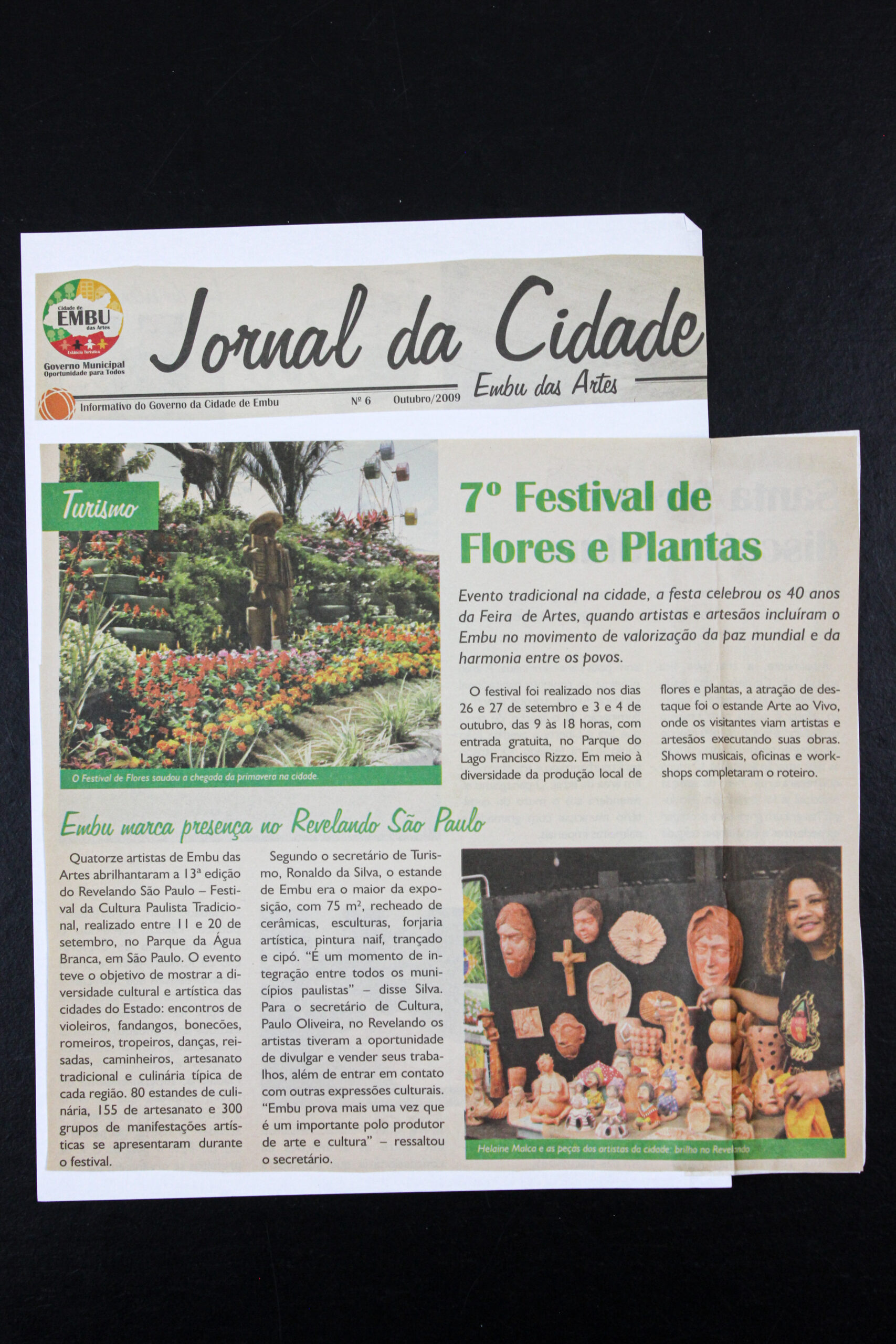 Jornal da Cidade, outubro de 2009, reportagem sobre Embu no Revelando São Paulo. Festival de Flores e Plantas.