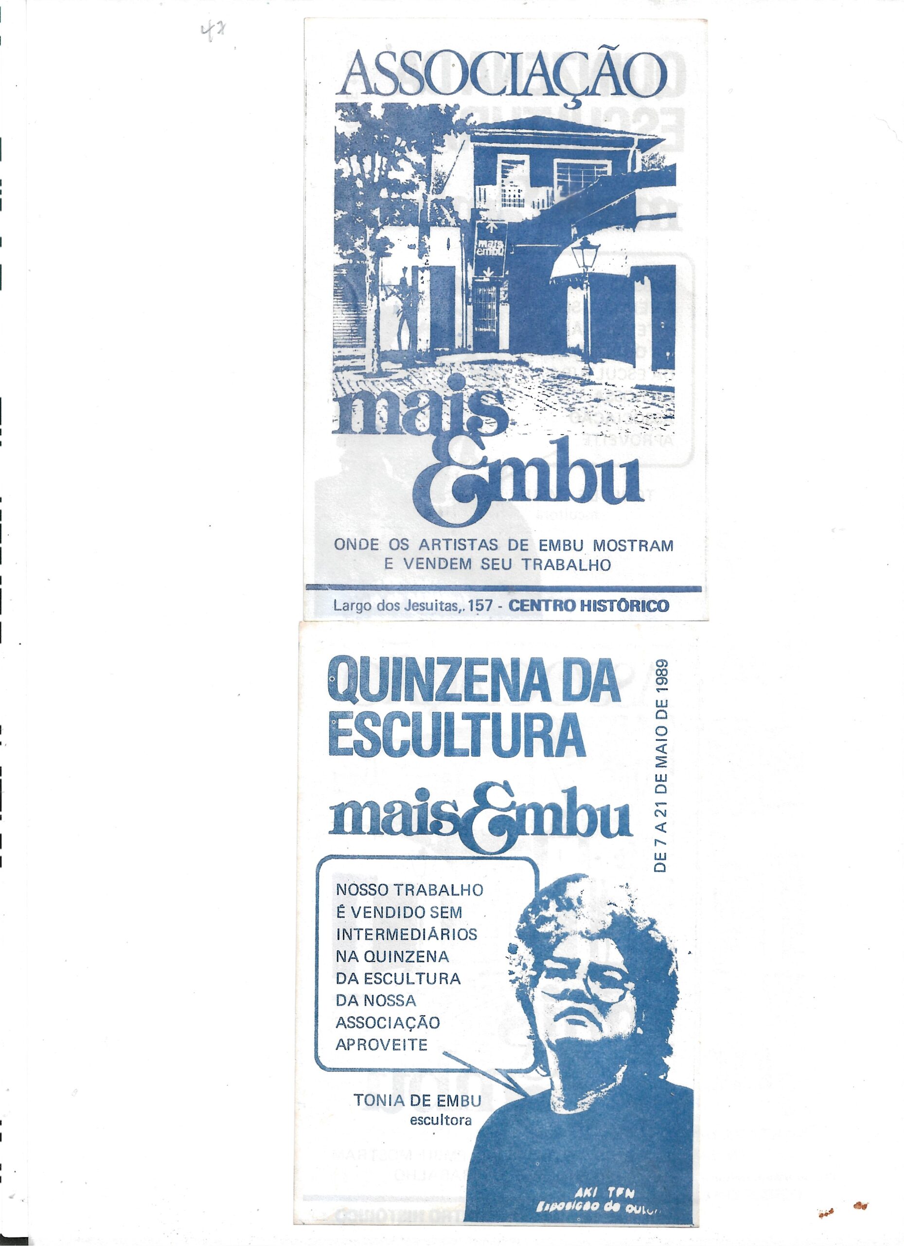 Panfleto Mais Embu, vendas de obras de arte, maio de 1989.