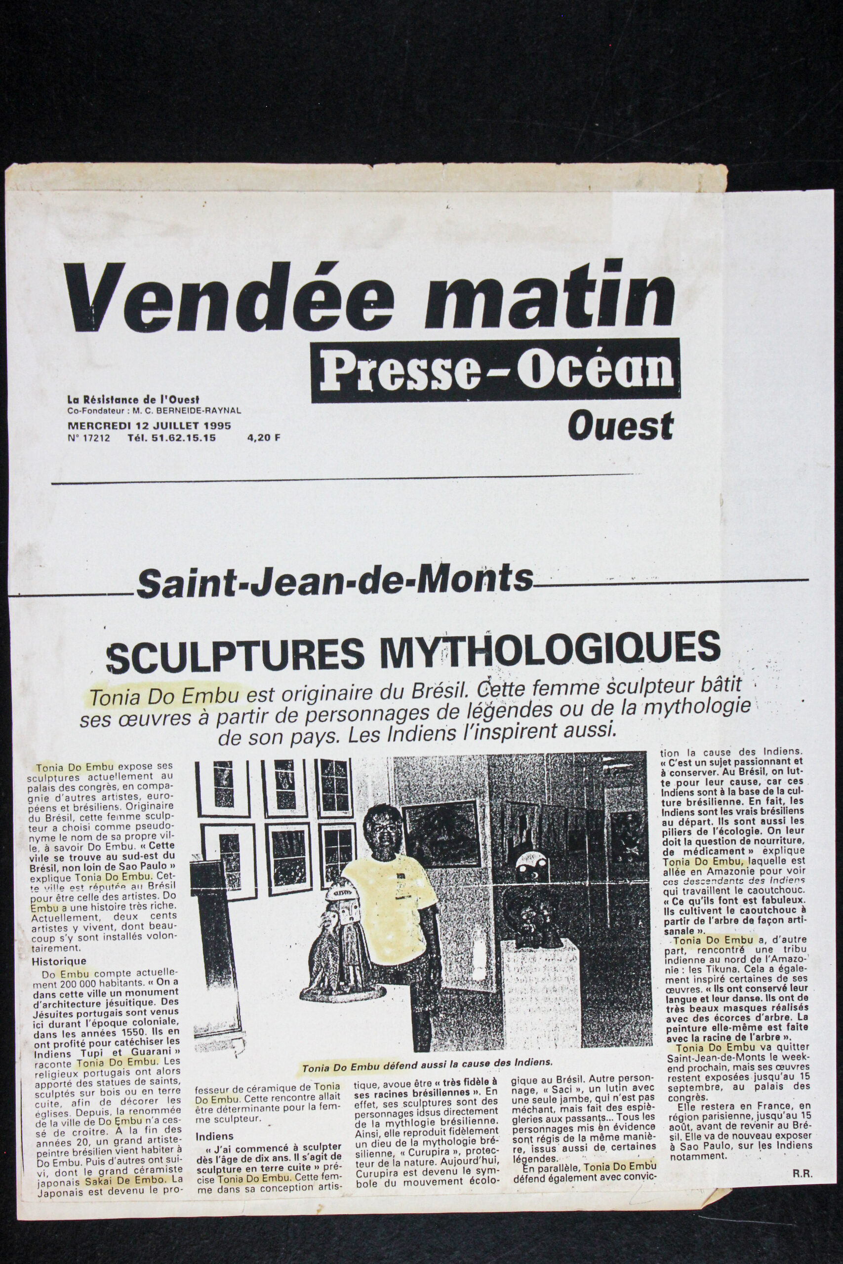 Jornal francês Vendée Matin, reportagem com Tônia do Embu e sua exposição na Europa (3 páginas).