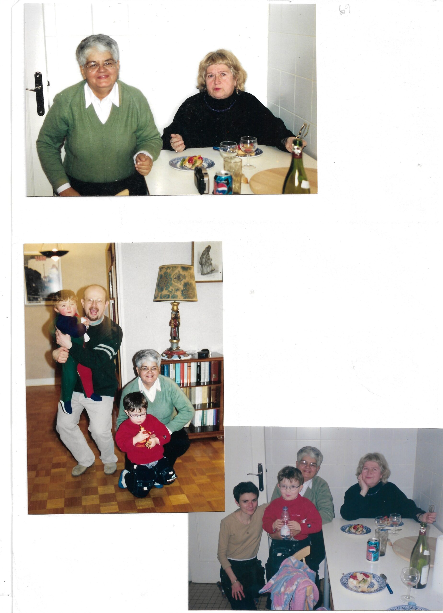 Fotografias (03), sem legenda. Ambiente doméstico com amigos e família, no exterior.