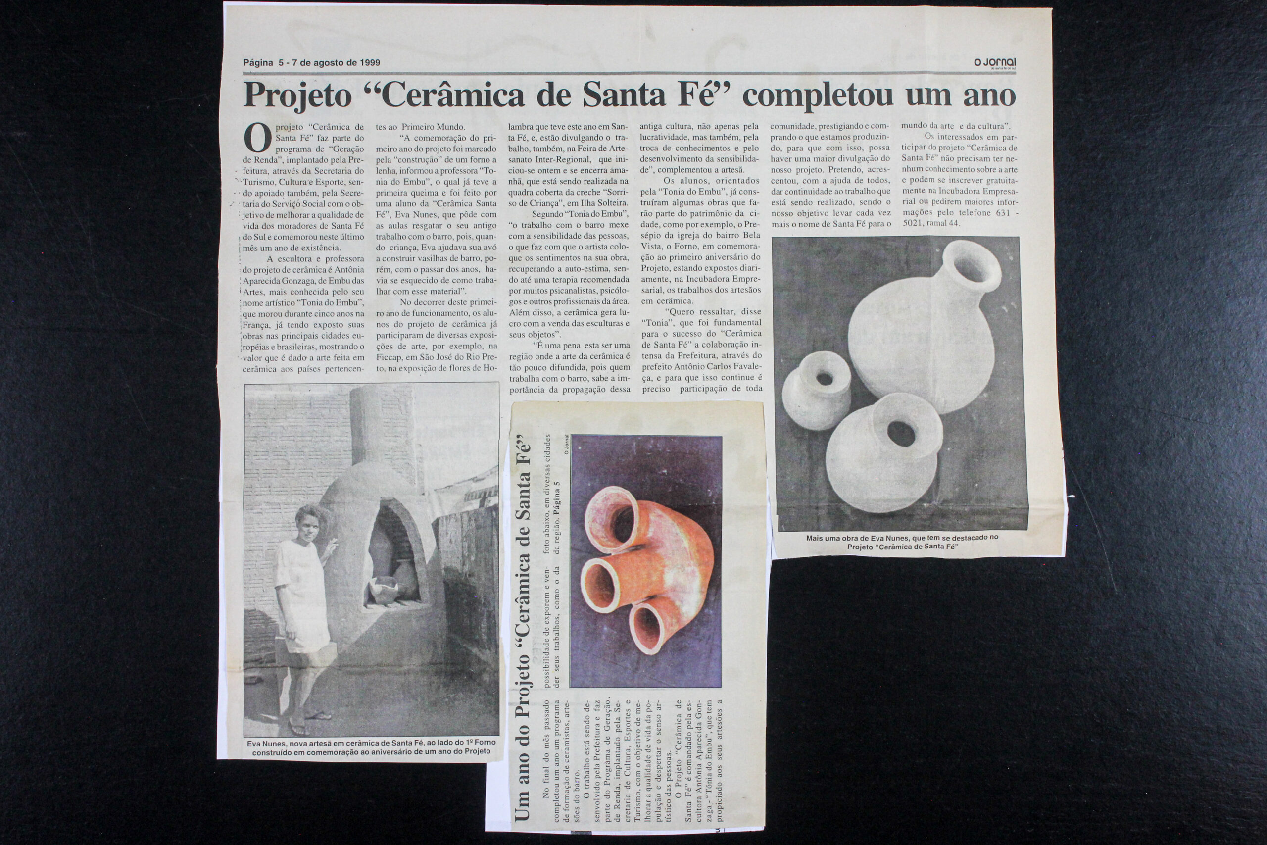 O Jornal de Santa Fé do Sul, agosto 1999, reportagem sobre o Projeto Cerâmica de Santa Fé, com atuação de Tonia de Embu.