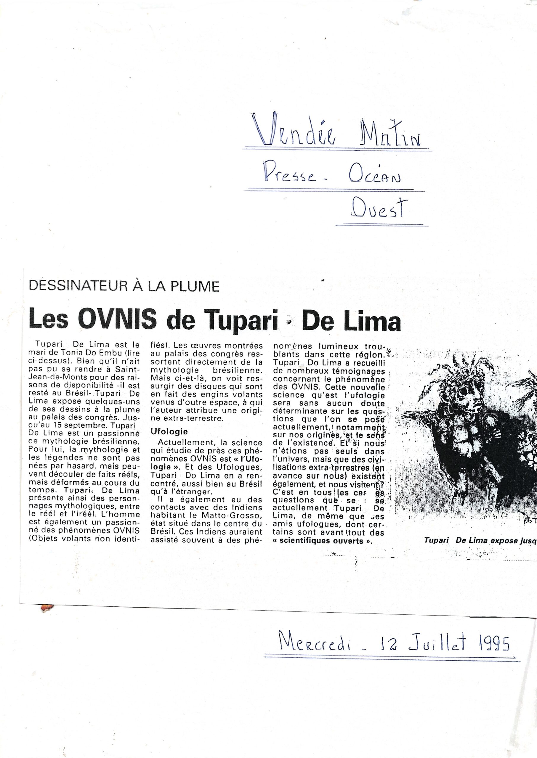 Vendée matin (França) , julho de 1995, reportagem “Les OVNIS de Tupari de Lima”.