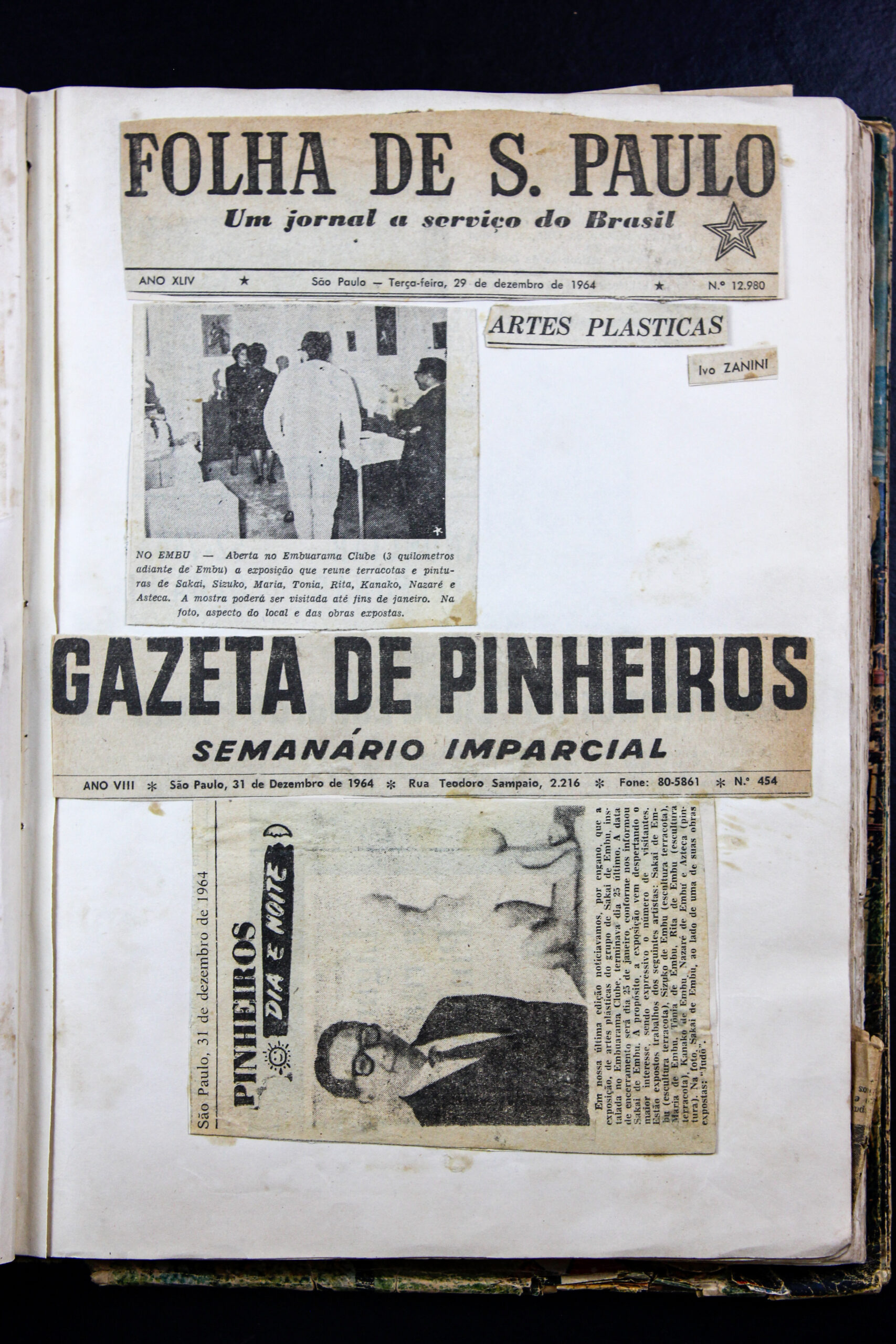 Folha de S. Paulo e Gazeta de Pinheiros, dezembro de 1964. Vinhetas do salão de artes plásticas do Grupo Sakai do Embu.