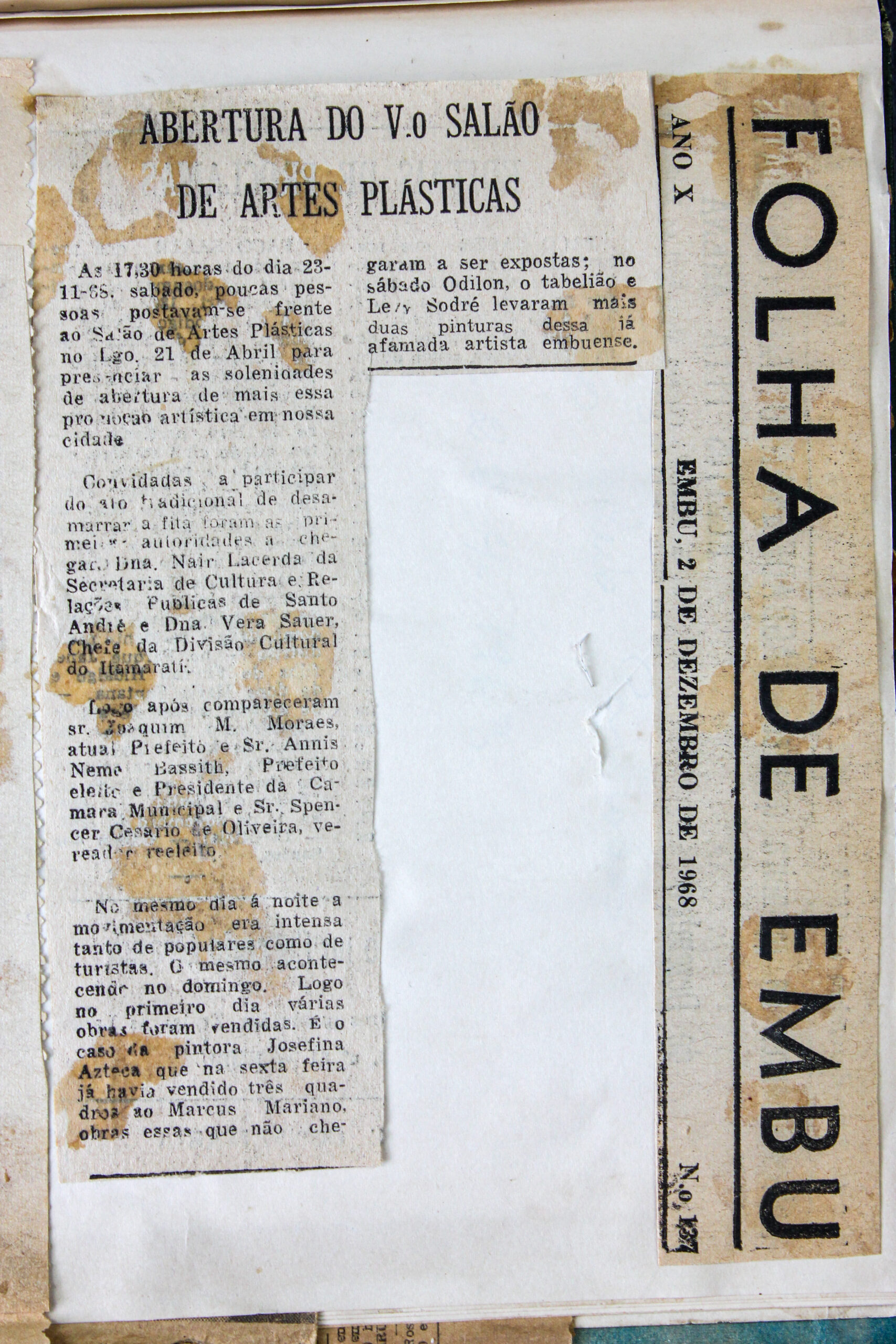 Folha de Embu, dezembro de 1968, reportagem sobre a abertura do V Salão de Artes Plásticas do Embu.