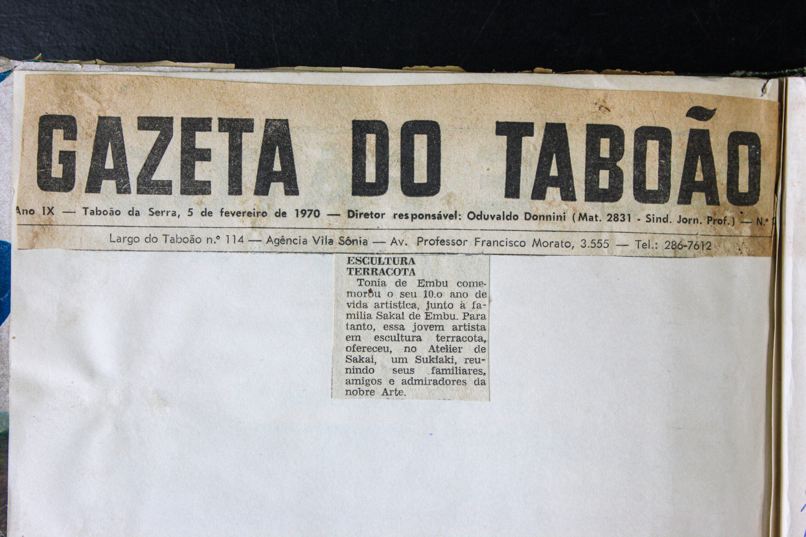 Gazeta de Taboão, fevereiro de 1970, vinheta escultura terracota de Tônia.