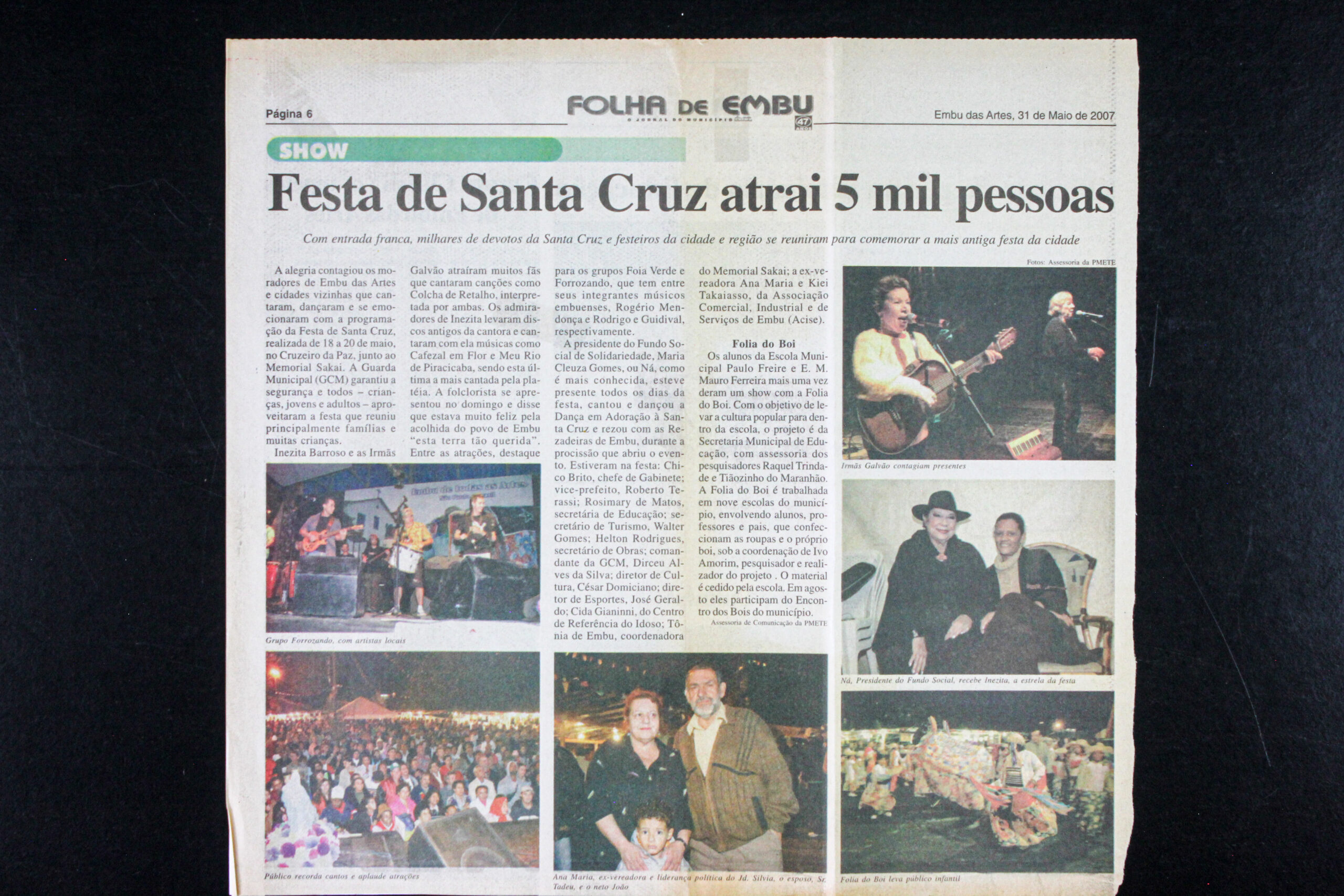 Folha de Embu, maio de 2007, reportagem da Festa de Santa Cruz.