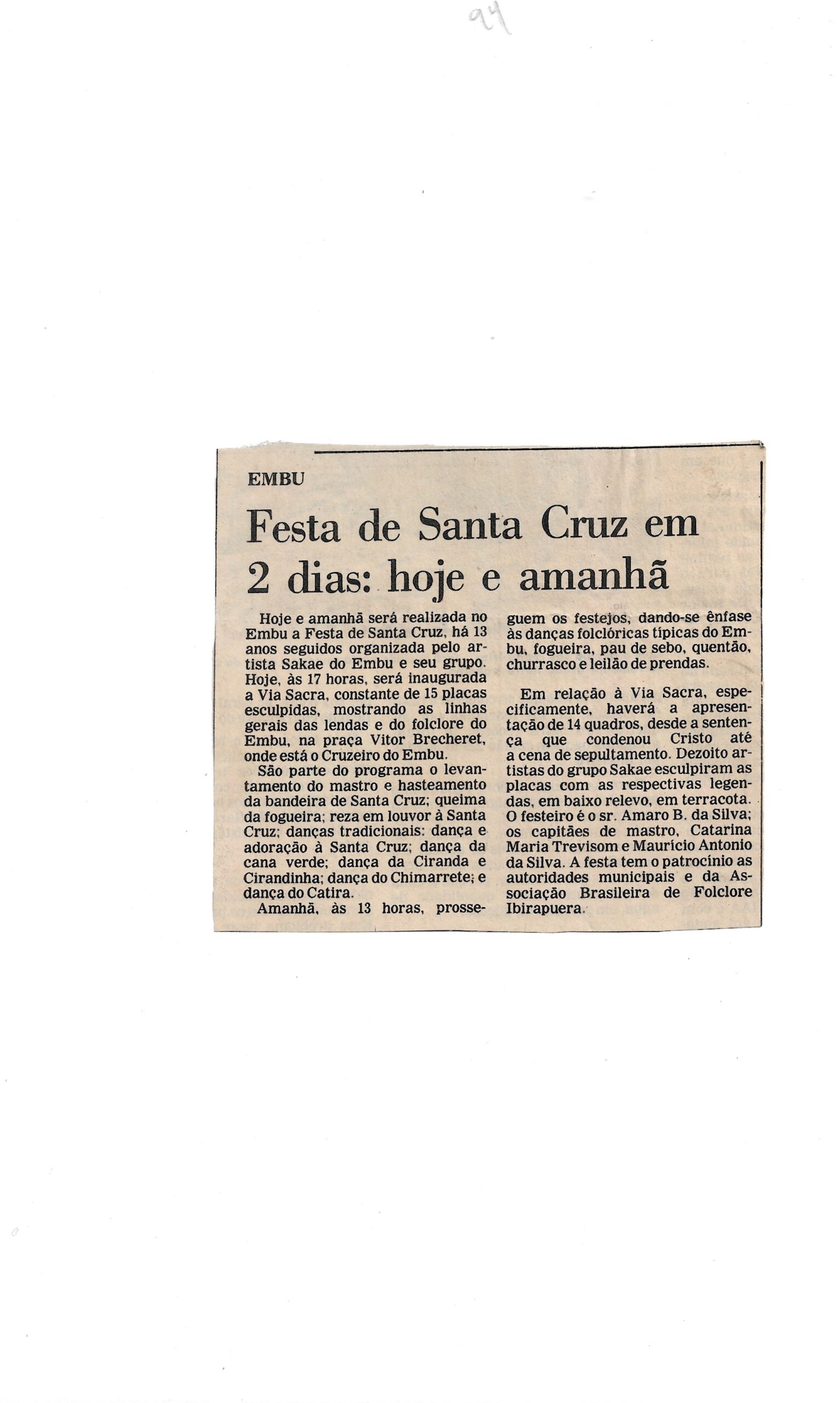 Vinheta “Festa de Santa Cruz em 2 dias: hoje e amanhã”.
