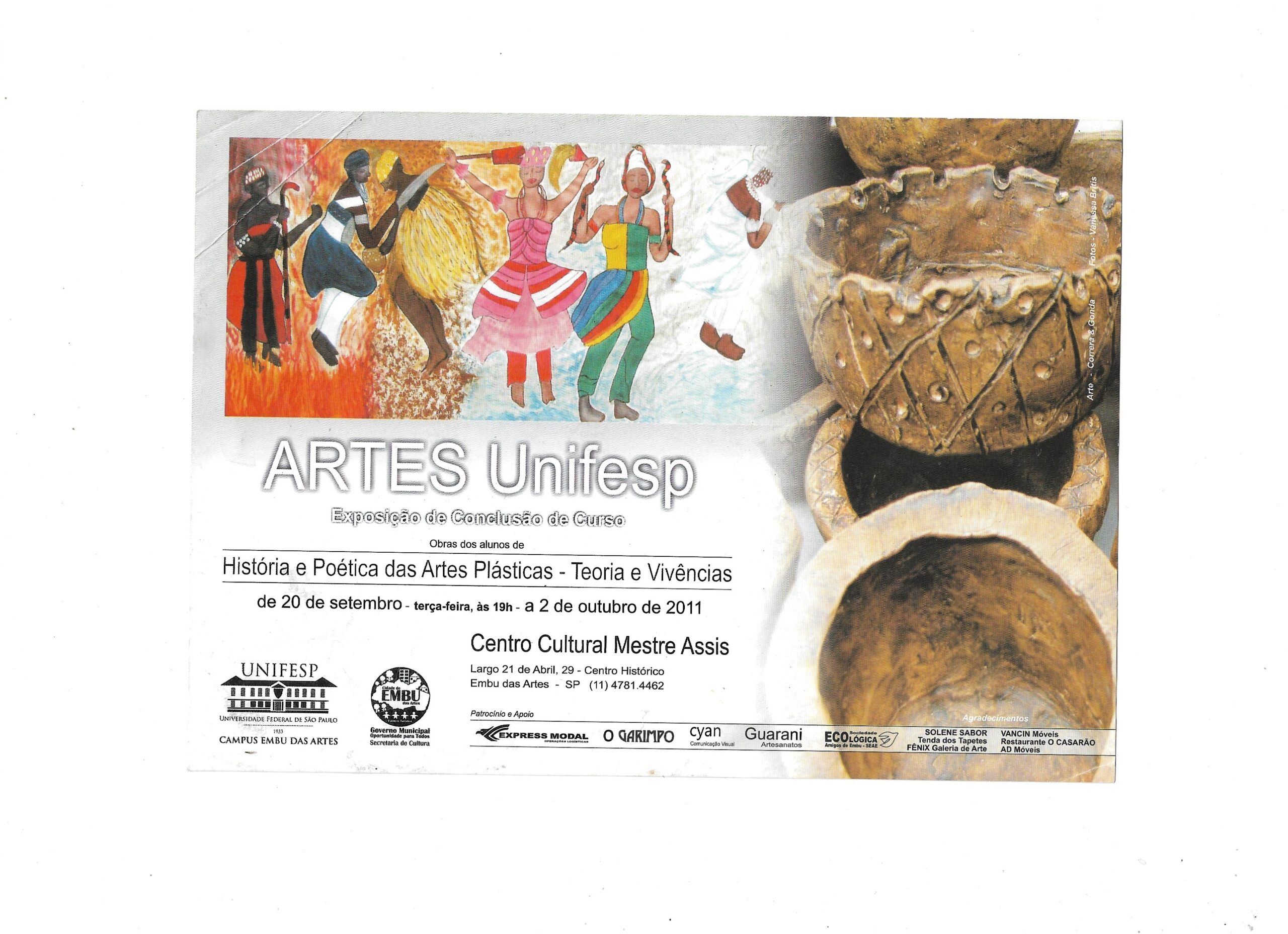 Panfleto Artes Unifesp, Exposição de conclusão de Curso, História e Poética das Artes Plásticas – Teoria e Vivência. Outubro de 2011. Centro Cultural Mestre Assis....