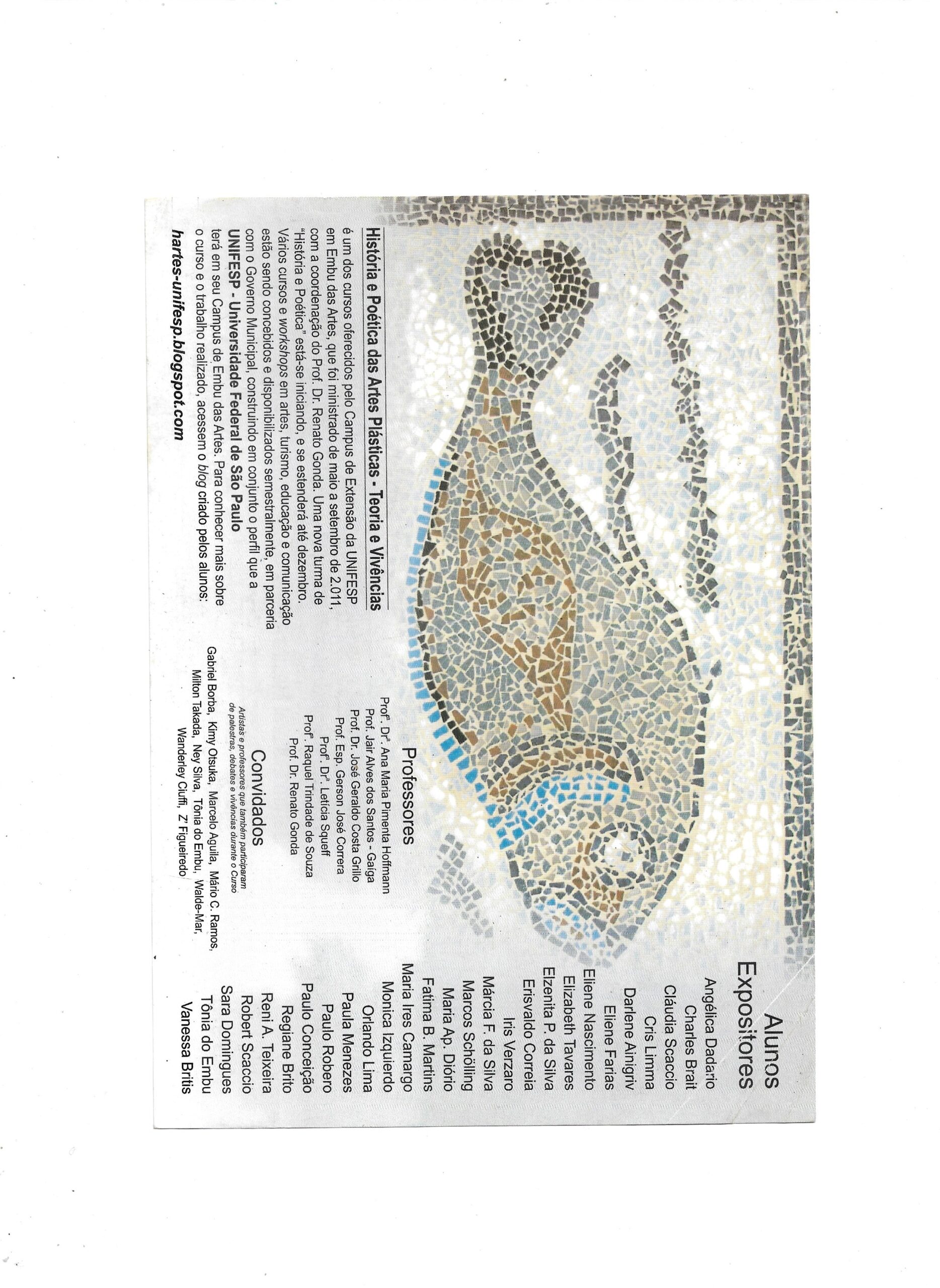 Panfleto Artes Unifesp, Exposição de conclusão de Curso, História e Poética das Artes Plásticas – Teoria e Vivência. Outubro de 2011. Centro Cultural Mestre Assis....