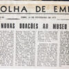 Folha de Embu, 15 de março de 1970, inauguração do Museu Histórico, Folclórico e Artístico de Embu.