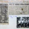 Folha de S. Paulo de 1962, reportagem “Arte de criança ajuda desamparados” sobre Tonia, arte sacra e cerâmica, com anotação manuscrita. Inclui uma fotografia de...