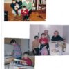 Fotografias (03), sem legenda. Ambiente doméstico com amigos e suas famílias, no exterior.